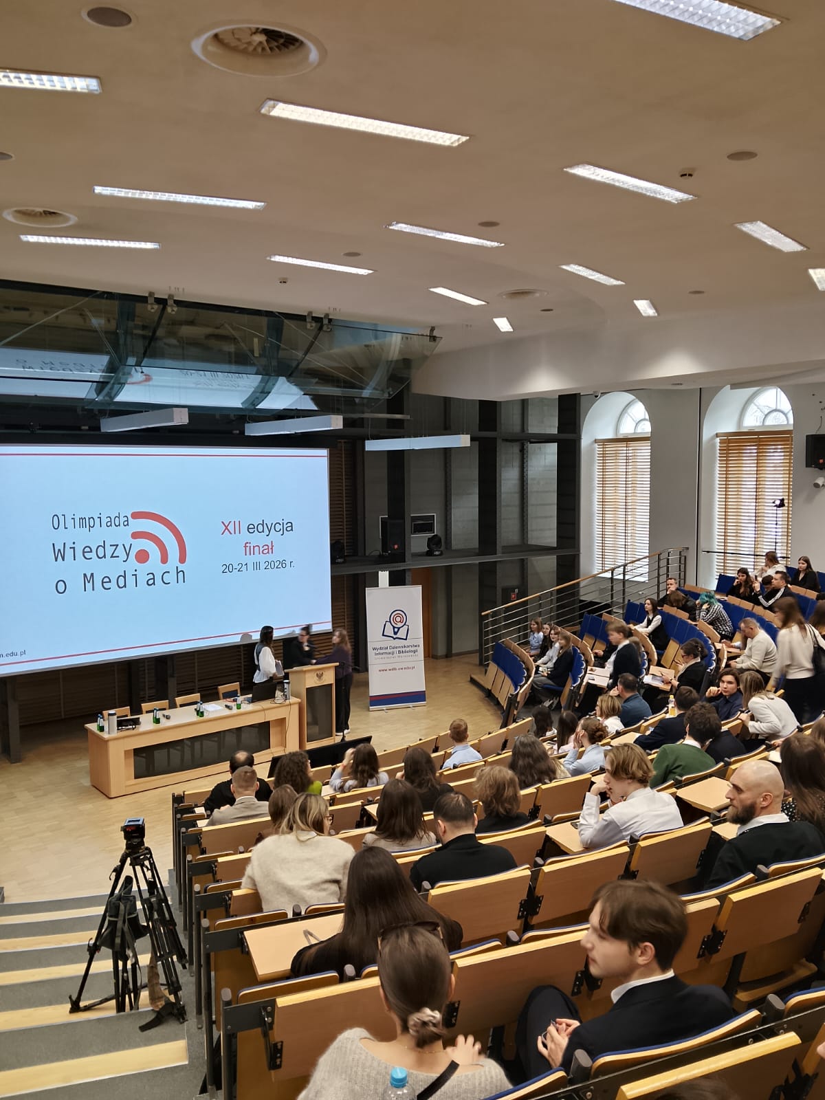 W dniach 20-21 marca 2026 roku odbył się etap centralny interdyscyplinarnej Olimpiady Wiedzy o Mediach, zorganizowany na Wydziale Dziennikarstwa, Informacji i Bibliologii Uniwersytetu Warszawskiego.